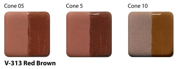 Red Brown is a warm cocoa color with a red tint at cone 05/06.  The color darkens at cone 5/6 and becomes chocolate brown at cone 10.  A clear glaze deepens the color significantly at any temperature.