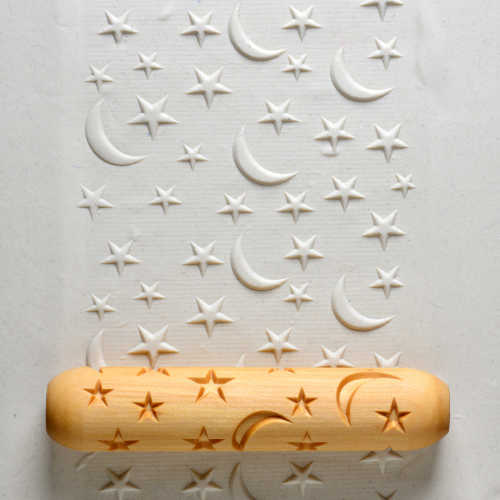 This Hand Roller is 12 cm (4.75 inches) long and 2.5 cm (1.0 inch) in diameter.  You simply roll them with your hand across the clay or up the wall of a pot to create a beautiful pattern in the clay.