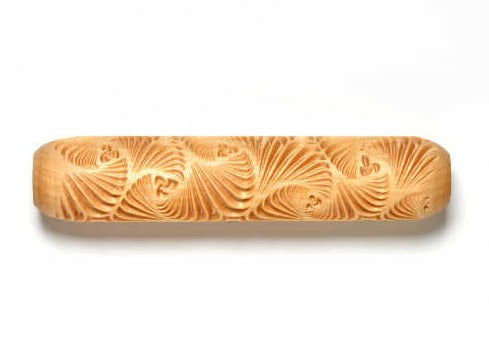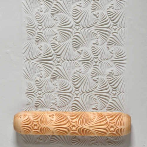 This Hand Roller is 12 cm (4.75 inches) long and 2.5 cm (1.0 inch) in diameter. You simply roll them with your hand across the clay or up the wall of a pot to create a beautiful pattern in the clay.