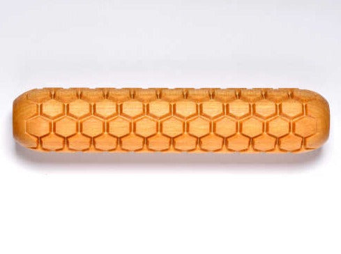 This Hand Roller is 12 cm (4.75 inches) long and 2.5 cm (1.0 inch) in diameter. You simply roll them with your hand across the clay or up the wall of a pot to create a beautiful pattern in the clay.