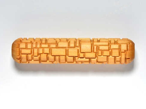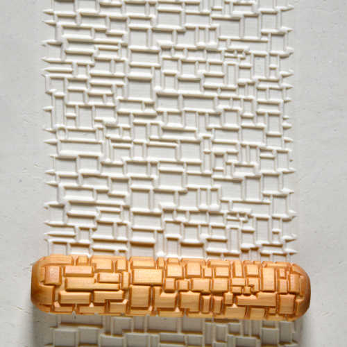 This Hand Roller is 12 cm (4.75 inches) long and 2.5 cm (1.0 inch) in diameter.  You simply roll them with your hand across the clay or up the wall of a pot to create a beautiful pattern in the clay.