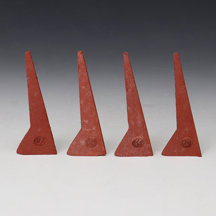 These cone packs have 8 Self Supporting Cones in them, no need for cone holders or little balls of clay.  Each cone has the number stamped on its base.  Place your cones so they will not touch anything as they bend.  Your target cone (the temperature you want to reach) should be bent 90 degrees after firing.  If your cone falls shy or exceeds 90 degrees, please contact us and we will help you figure out why.