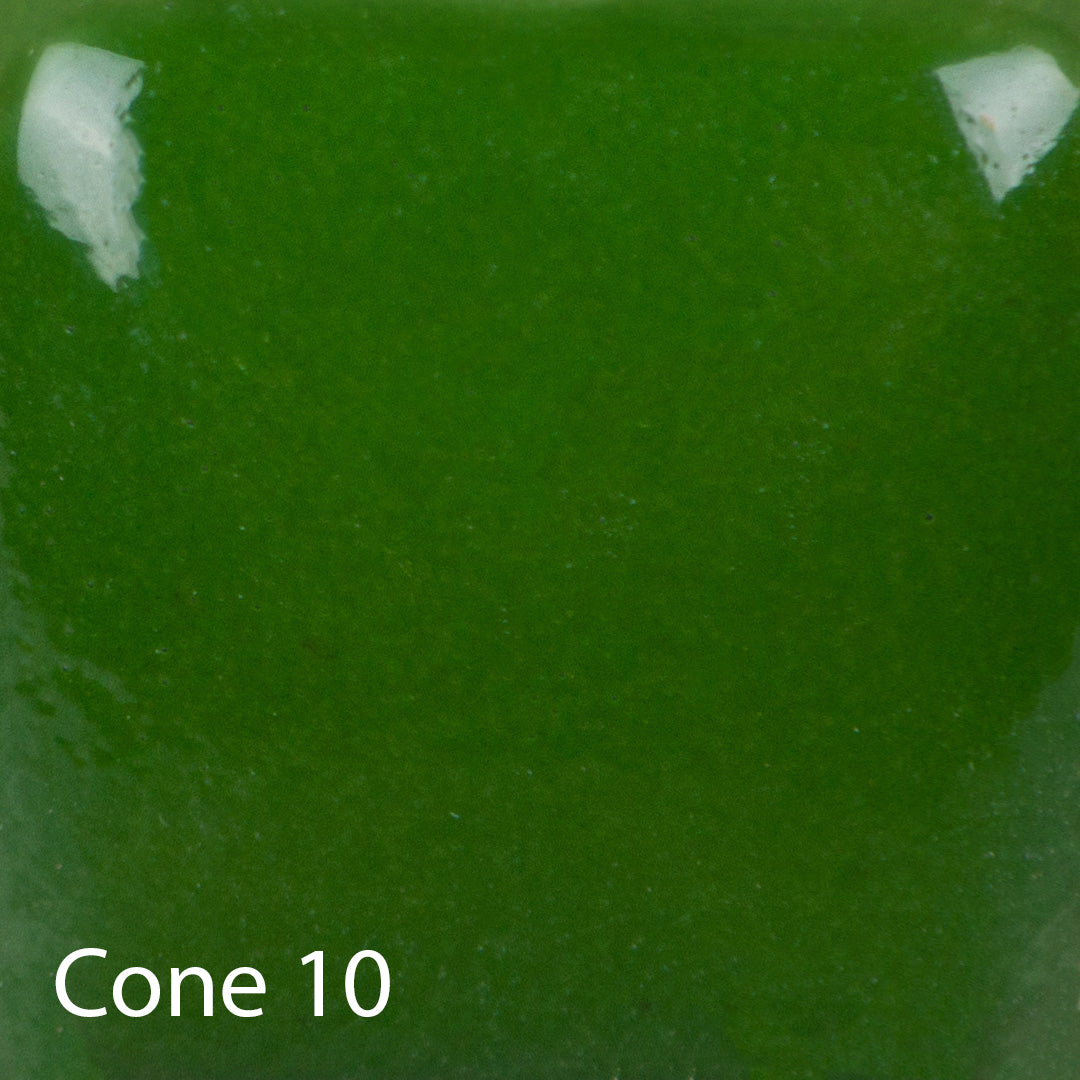 Cone 06: Just Froggy is a heavily pigmented, viscous Stroke & Coat® glaze that can be used for brush strokes or opaque coverage. One coat will create a translucent finish with subsequent coats adding opacity. We suggest two to three coats for full opacity and all over coverage. Will fire to a gloss finish without clear glaze.