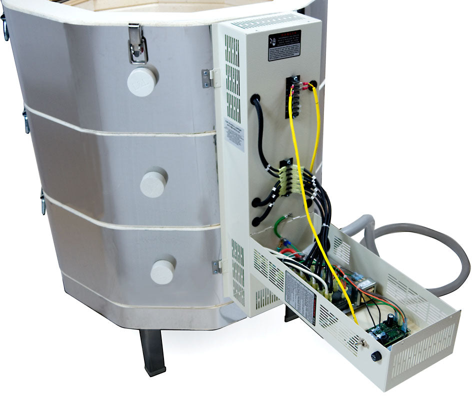 Proprietary One-Touch™ Intuitive Kiln Control is designed for busy school teachers - One touch and you are ready to fire the bisque and glaze programs typically used in schools (also easy to adjust simple parameters like cone, delay, hold, heat-up and cool-down rates). You can even create four custom ramp/hold programs.