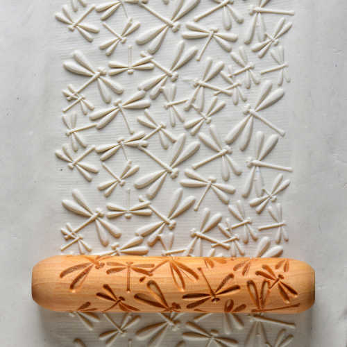 BHR HandRollers are 12 cm (4.75 inches) long and 2.5 cm (1.0 inch) in diameter. You simply roll them with your hand across the clay or up the wall of a pot to create a beautiful pattern in the clay. The MKM Roller Board can help create long smooth rolls and avoid knuckle bumps.