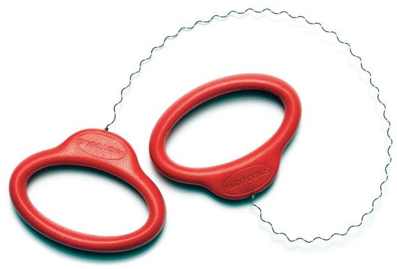 This is more than just a cut-off tool. As you pull it through the clay it leaves a beautiful pattern. Use it for faceting and you get a surface that looks beautiful on wood-fired or salt-fired pots and under glazes that break (like celadon or temeku). Our handles are made of a durable polymer and are shaped to give you a comfortable ergonomic grip without having to wrap the wire around your fingers. The stainless steel coiled wire comes to you compressed and you pull it out to get the curl that suits you.