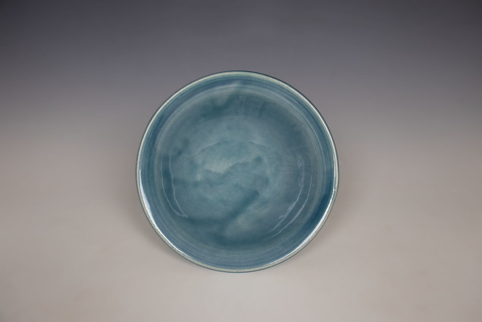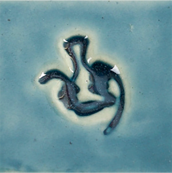 Shadow Blue is a semi-transparent, glossy blue glaze.  On porcelain it will be a lighter blue, on white clay it will be a slightly darker blue, on red clay it will be a dark blue-green.