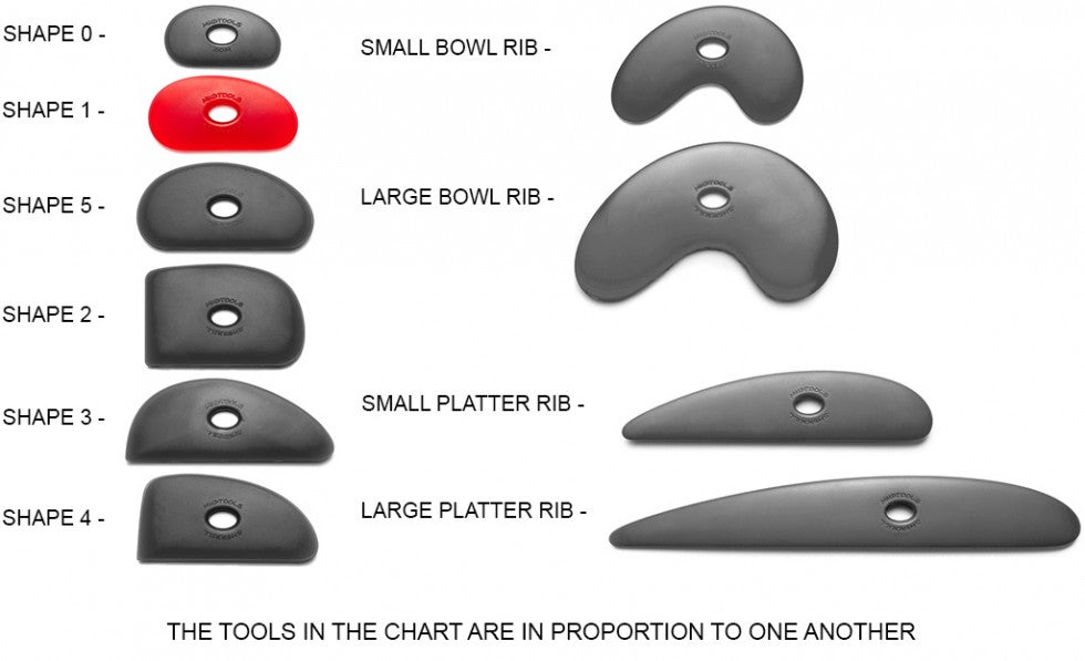 These traditional kidney-shaped ribs are the most universally recognized pottery tool. They fit well in the hand and are useful for sculpting, hand building and throwing clay.