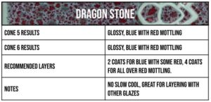 Dragon Stone is a gloss glaze that is the perfect storm of ice-blue hues intertwined with cascading deep reds. Great for layering, Dragon Stone benefits from an extra thick application to maximize the eye-catching mottling.