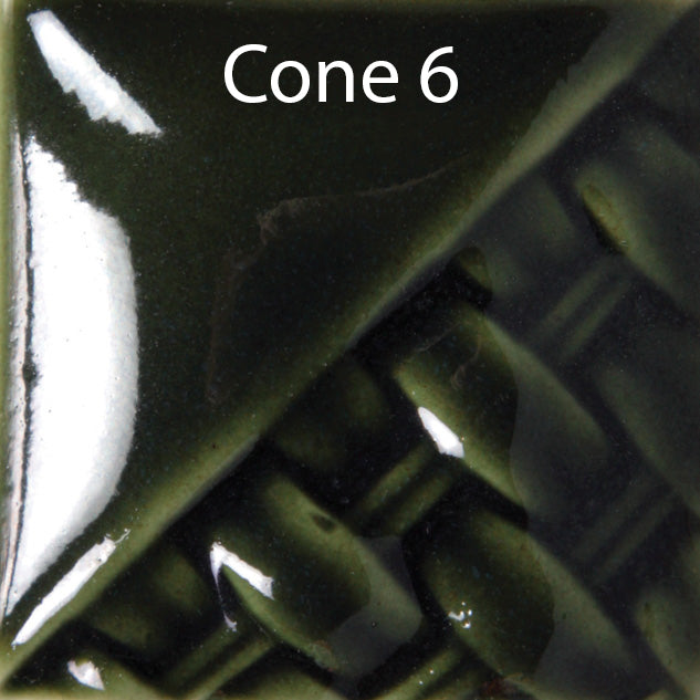 Cone 6: Emerald provides a translucent green gloss color. You will produce beautiful color variations with Emerald without the glaze running off your ware during firing. Designed to provide a hint of color with one coat, deeper color with two to three coats – but remaining translucent.